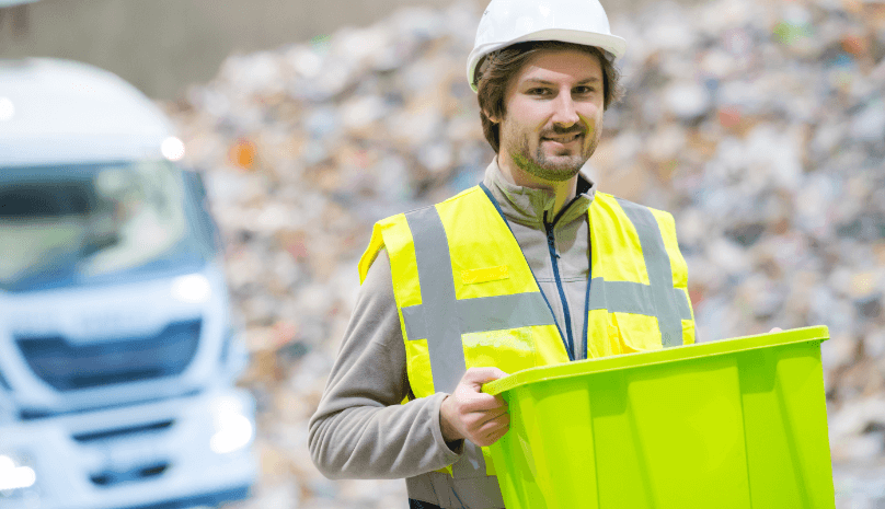 „Wir sind vorwiegend ein Logistikunternehmen und haben uns auf die Entsorgung von Gewerbeabfällen spezialisiert. Unsere Flotte an Fahrzeugen ist mittlerweile groß genug, um einen großen Teil der umliegenden Firmen zu bedienen. Dabei wird der Müll der Firmen in regelmäßigen Intervallen abgeholt und teilweise zunächst hier gelagert. Wenn wir in der Logistik sind, erzähle ich Ihnen mehr dazu. Teile der Mülltrennung nehmen wir dann hier vor Ort vor. Deshalb war es nur logisch, dass wir unseren Standort vor drei Jahren noch um ein eine Wertstoffannahmestelle erweitert haben.“