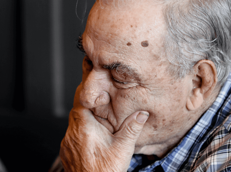 Der Bauer wirkt müde durch die ständigen Bedrängungen.